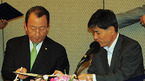 고양 국가대표 야구훈련장 협정식이 10일 오후 한국프레스센터 19층 매화홀에서 열렸다. 이 자리에는 강현석 고양시장, 유영구 한국야구위원회 총재, 강승규 대한야구협회장, 박용성 대한체육회장, 허구연 야구발전실행위원장이 참석했다. 유영구 총재와 강현석 시장이 협정식중 사인을 하고 있다./민경훈 기자 rumi@osen.co.kr