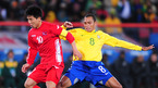 [OSEN/머니투데이=요하네스버그(남아공),손용호 기자] 2010남아공월드컵 북한 대 브라질 경기가 16일(한국시간) 요하네스버그 엘리스 파크 스타디움에서 열렸다. 브라질은 G조 1차전에서 마이콘과 엘라누의 연속골에 힘입어 북한을 2-1로 물리쳤다. &n
