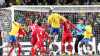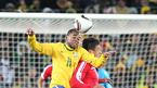 [OSEN/머니투데이=요하네스버그(남아공),손용호 기자] 2010남아공월드컵 북한 대 브라질 경기가 16일(한국시간) 요하네스버그 엘리스 파크 스타디움에서 열렸다.전반 브라질 루이스 파비아누가 헤딩슛을 날리고 있다./ spjj@osen.co.k