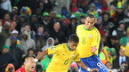 [OSEN/머니투데이=요하네스버그(남아공),손용호 기자] 2010남아공월드컵 북한 대 브라질 경기가 16일(한국시간) 요하네스버그 엘리스 파크 스타디움에서 열렸다.전반 박남철과 브라질 호비뉴가 공중볼 다툼을 벌이고 있다./ spjj@osen.co.kr온