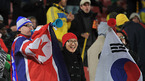 [OSEN/머니투데이=요하네스버그(남아공),손용호 기자] 2010남아공월드컵 북한 대 브라질 경기가 16일(한국시간) 요하네스버그 엘리스 파크 스타디움에서 열렸다. 경기에 앞서 북한의 인공기와 대한민국의 태극기가 함께 응원을 펼치고 있다./ spjj@os