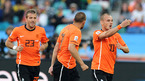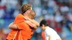[OSEN/머니투데이=더반(남아공), 송석인 객원기자] 2010 남아공월드컵 일본 대 네덜란드 경기가 19일(한국시간) 더반 모저스 마비다 스타디움에서 열렸다. 후반 스네이더가 결승골을 넣은 후 동료들과 기쁨을 나누고 있다./ song@osen.co.kr