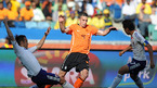 [OSEN/머니투데이=더반(남아공), 송석인 객원기자] 2010 남아공월드컵 일본 대 네덜란드 경기가 19일(한국시간) 더반 모저스 마비다 스타디움에서 열렸다. 후반 스네이더가 결승골을 넣은 후 키스를 보내고 있다./ song@osen.co.kr