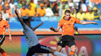 [OSEN/머니투데이=더반(남아공), 송석인 객원기자] 2010 남아공월드컵 일본 대 네덜란드 경기가 19일(한국시간) 더반 모저스 마비다 스타디움에서 열렸다. 후반 스네이더가 결승골을 넣은 후 동료들과 기쁨을 나누고 있다./ song@osen.co.kr