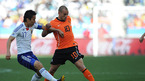 [OSEN/머니투데이=더반(남아공), 송석인 객원기자] 2010 남아공월드컵 일본 대 네덜란드 경기가 19일(한국시간) 더반 모저스 마비다 스타디움에서 열렸다. 전반 스네이더가 일본 마쓰이가 쫓아 오는 가운데 드리블하고 있다./ song