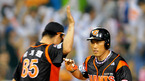 [OSEN=잠실,지형준 기자] '2010 CJ 마구마구 프로야구' LG 트윈스와 롯데 자이언츠의 경기가 20일 오후 서울 잠실구장에서 열렸다. LG는 더마트레를, 롯데는 사도스키를 선발로 내세웠다. 9회초 2사 2루에서 롯데 조성환이 투런