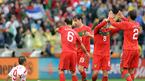 [OSEN/머니투데이=케이프타운(남아공), 송석인 객원기자] 2010 남아공월드컵 북한 대 포르투갈의 경기가 21일(한국시간) 케이프타운 그린 포인트 스타디움에서 열렸다. 이 날 경기에서 포르투갈이 북한에게 7-0으로 승리를 거뒀다.기쁨을 나누는 포르투갈