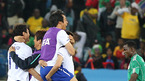 [OSEN/머니투데이=더반(남아공),손용호 기자] 2010 남아공월드컵 B조 3차전 한국-나이지리아의 경기가 23일(한국시간) 새벽 더반 모세스 마비다 스타디움에서 벌어졌다.한국은 월드컵 B조 3차전 나이지리아와 경기에서 이정수와 박주영의 연속골로 2-2로 비겨 16