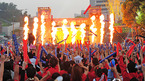 [OSEN=지형준 기자] 2010 남아공 월드컵 B조 조별리그 3차전 한국과 나이지리아 경기가 펼쳐진 23일 오전 서울 삼성동 코엑스 앞 영동대로에서 붉은악마가 16강 진출이 확정되자 환호하고 있다./jpnews@osen.co.kr