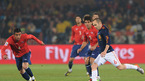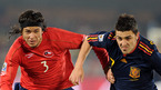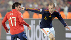 [OSEN/머니투데이=프리토리아(남아공), 송석인 객원기자] 2010 남아공월드컵 스페인 대 칠레 경기가 26일(한국시간) 새벽 로프투스 퍼스펠트 스타디움에서 열렸다. 후반 스페인 비야가 이슬라를 제치고 돌파를 시도하고 있다. /