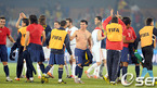 [OSEN/머니투데이=프리토리아(남아공), 송석인 객원기자] 2010 남아공월드컵 스페인 대 칠레 경기가 26일(한국시간) 새벽 로프투스 퍼스펠트 스타디움에서 열렸다. 경기 종료 후 스페인 라모스와 칠레 보세주르가 서로에게 축하를 하고 있다/&n