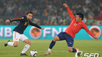 [OSEN/머니투데이=프리토리아(남아공), 송석인 객원기자] 2010 남아공월드컵 스페인 대 칠레 경기가 26일(한국시간) 새벽 로프투스 퍼스펠트 스타디움에서 열렸다. 전반 스페인 사비와 칠레 메델이 볼을 다투고 있다. / song@osen.co.kr