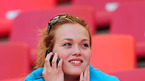 [OSEN/머니투데이=포트 엘리자베스(남아공),손용호 기자] 2010 남아공월드컵 16강 한국 대 우루과이 경기가 26일(한국시간) 포트 엘리자베스 넬슨 만델라 베이 스타디움에서 열린다. 경기전 우르과이 미녀 응원단이 전화를 하며 경기를 기다리고 있다. /s