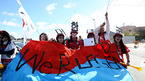 [OSEN/머니투데이=포트 엘리자베스(남아공),손용호 기자] 2010 남아공월드컵 16강 한국 대 우루과이 경기가 26일(한국시간) 포트 엘리자베스 넬슨 만델라 베이 스타디움에서 열렸다.대한민국 응원단이 경기 전 열띤 응원을 펼치고 있다. /spjj@osen.co.k
