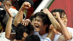 [OSEN/머니투데이=포트 엘리자베스(남아공),손용호 기자] 2010 남아공월드컵 16강 한국 대 우루과이 경기가 26일(한국시간) 포트 엘리자베스 넬슨 만델라 베이 스타디움에서 열렸다. 후반 이청용이 동점 헤딩골을 넣고 동료들과 환호하고 있다. /spjj@osen.co.kr
