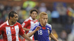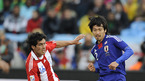 [OSEN=프리토리아(남아공), 송석인 객원기자] 2010 남아공월드컵 일본 대 파라과이 경기가 29일(한국시간) 프리토리아 로프터스 버스펠트 스타디움에서 열렸다. 전반 일본 다나카가 파라과이 베라의 태클을 피해 공격을 펼치고 있