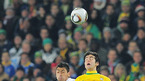 [OSEN=요하네스 버그(남아공), 송석인 객원기자] 2010 남아공월드컵 브라질 대 칠레의 16강전이 29일(한국시간) 새벽 요하네스 버그 엘리스 파크 스타디움에서 열렸다. 칠레의 비달이 브라질의 질베르투 멜루에 앞서 공중볼을 받아내고 있다./ s