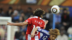 [OSEN=프리토리아(남아공), 송석인 객원기자] 2010 남아공월드컵 16강 일본 대 파라과이 경기가 29일(한국시간) 프리토리아 로프터스 버스펠트 스타디움에서 열렸다. 전반 파라과이 바리오스가 공중볼 다툼을 벌이고 있다./ song@osen.co.kr