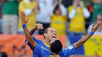 [OSEN=포트엘리자베스(남아공), 송석인 객원기자] 2010 남아공월드컵 브라질- 네덜란드의 8강전 경기가 2일(한국시간) 포트엘리자베스 만델라 베이 스타디움에서 열렸다. 전반 브라질 호비뉴가 첫 골을 넣고 환호하고 있다. /spjj@osen.co.kr