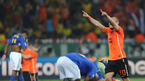 [OSEN=포트엘리자베스(남아공), 송석인 객원기자] 2010 남아공월드컵 브라질- 네덜란드의 8강전 경기가 2일(한국시간) 포트엘리자베스 만델라 베이 스타디움에서 열렸다. 후반 네덜란드 스네이더가 헤딩 역전골을 넣고