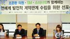 [OSEN=민경훈 기자] 연예계 발전적인 계약관계 수립을 위한 선포식이 6일 오전 국회의원회관에서 열렸다. 이 자리에는 소녀시대와 SM 김영민 대표, 조문환 의원이 참석한 가운데 연예인의 권익을 보호하며 연예인과 엔터테인먼트 회사가 상호 신뢰하고 성장하고자