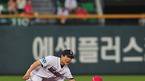 [OSEN=잠실,김영민 기자]'2010 CJ마구마구 프로야구' 두산 베어스 와 KIA 타이거즈 경기가 8일 잠실 구장에서 열려 두산은 김선우를 내세워 '절친' KIA 서재응과의 두 번째 선발 맞대결을 펼친다. 3회말 1사 1,3루 오재원의 내야땅볼때 3루