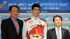 [OSEN=박준형 기자]28일 오전 서울 청담동 호텔 리베라에서 열린 프로배구 2010~2011시즌 남자 드래프트 1라운드에서 KEPCO45 지명된 박준범이 강만수 감독, 김종록 단장과 함께 포토타임을 갖고 있다. 총 28명의 선수가 참가하는 이번 드래