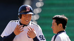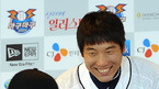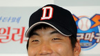 [OSEN=박준형 기자]28일 오후 서울 잠실구장 기자회견장서 열릴 2010 프로야구 준플레이오프 미디어데이 행사 두산 김현수가 롯데 홍성흔의 답변을 받아 대답하며 미소 짓고 있다. /soul1014@osen.co.kr
