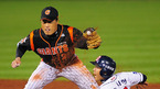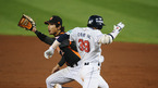 [OSEN=잠실,지형준 기자] 29일 잠실구장에서 열리는 '2010 CJ마구마구 프로야구' 준플레이오프 1차전 두산 베어스와 롯데 자이언츠의 경기, 6회말 1사 1루에서 롯데 송승준의 폭투에 2루 도루를 시도한 두산 손시헌이 조성환의 태그를 피해 세