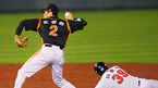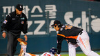 [OSEN=잠실,김영민 기자]29일 잠실 경기장에서 열린 '2010 CJ 마구마구 프로야구 준플레이오프 1차전' 두산 베어스와 롯데 자이언츠 경기 3회말 1사 1.3루 고영민 3루앞 땅볼때 3루 주자 손시헌 귀루를 하였으나 이대호 3루수에게 태그아웃 처리되고&nb