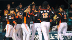 [OSEN=잠실,지형준 기자] 29일 잠실구장에서 열리는 '2010 CJ마구마구 프로야구' 준플레이오프 1차전 두산 베어스와 롯데 자이언츠의 경기, 3회말 1사 1,3루에서 두산 고영민의 내야땅볼을 롯데 수비진이 병살로 처리하자 덕아웃에서 하이파이브를 하고