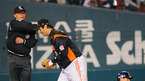 [OSEN=잠실,김영민 기자]29일 잠실 경기장에서 열린 '2010 CJ 마구마구 프로야구 준플레이오프 1차전' 두산 베어스와 롯데 자이언츠 경기 4회말 2사 1루 롯데 선발 송승준이 이성열을 볼넷으로 진루시키며 아쉬워하고 있다./ ajyoung@osen.co.kr