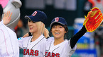 [OSEN=잠실,지형준 기자] 29일 잠실구장에서 열리는 '2010 CJ마구마구 프로야구' 준플레이오프 1차전 두산 베어스와 롯데 자이언츠의 경기에 앞서 시타 시구자로 나선 미쓰에이 지아와 민의 손을 흔들며 그라운드를 나서고 있다. / jpnews@osen.co.kr