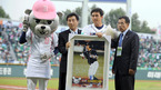 [OSEN=잠실,박준형 기자] 29일 잠실구장에서 열리는 '2010 CJ마구마구 프로야구' 준플레이오프 1차전 두산 베어스와 롯데 자이언츠의 경기에 앞서 두산 김동주가 구단최초 1500안타 달성 기념 시상을 하고 있다. / soul1014@osen.co.kr