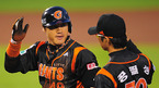 [OSEN=잠실,김영민 기자]29일 잠실 경기장에서 열린 '2010 CJ 마구마구 프로야구 준플레이오프 1차전' 두산 베어스와 롯데 자이언츠 경기 2회초 2사 3루 전준우의 적시타때 3루 주자 강민호 박수를 치며 득점을 올리고 있다. / ajyoung@osen.co.kr