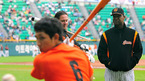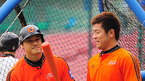 [OSEN=잠실,지형준 기자] 29일 잠실구장에서 열리는 '2010 CJ마구마구 프로야구' 준플레이오프 1차전 두산 베어스와 롯데 자이언츠의 경기에 앞서 롯데 로이스터 감독이 황재균의 타격 연습을 바라보고 있다. / jpnews@osen.co.kr