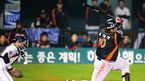 [OSEN=잠실,지형준 기자] 29일 잠실구장에서 열리는 '2010 CJ마구마구 프로야구' 준플레이오프 1차전 두산 베어스와 롯데 자이언츠의 경기, 7회초 2사 1루에서 롯데 조성환이 동점 우중간 적시타를 날리고 기뻐하고 있다. / jpnews@osen.co.kr