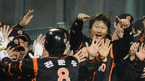 [OSEN=잠실,김영민 기자]29일 잠실 경기장에서 열린 '2010 CJ 마구마구 프로야구 준플레이오프 1차전' 두산 베어스와 롯데 자이언츠 경기 9회초 무사 전준우 좌월 역전 홈런을 날리고 홈인 동료들로 부터 환영을 받고 있다./ ajyoung@osen.co.kr