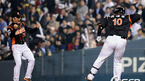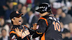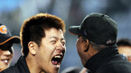 [OSEN=잠실,박준형 기자] 30일 잠실구장에서 열리는 '2010 CJ마구마구 프로야구' 준플레이오프 2차전 두산 베어스와 롯데 자이언츠의 경기에 연장 10회 1사 1,2루 롯데 이대호가 3점 홈런을 날린뒤 공필성 코치와 환호하고 있다. / soul1014@osen.co.kr