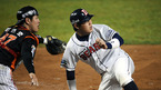 [OSEN=잠실,김영민 기자]30일 잠실 경기장에서 열린 '2010 CJ 마구마구 프로야구 준플레이오프 2차전' 두산 베어스와 롯데 자이언츠 경기 6회말 2사 2루 손시헌 좌익수앞 안타때 2루 주자 양의지 홈까지 쇄도하였으나 태그아웃 되고 있다./ ajyoung@osen.co.kr