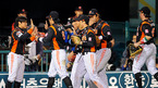 [OSEN=잠실,지형준 기자] 30일 잠실구장에서 열린 '2010 CJ마구마구 프로야구' 준플레이오프 2차전 두산 베어스와 롯데 자이언츠의 경기, 7회말 1사 2,3루에서 두산 이성열의 내야안타에 홈을 밟은 임재철이 덕아웃에서 동료선수들과 기뻐하고 있다. / j