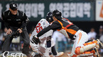 [OSEN=잠실,박준형 기자] 30일 잠실구장에서 열리는 '2010 CJ마구마구 프로야구' 준플레이오프 2차전 두산 베어스와 롯데 자이언츠의 경기에 6회말 2사 2루 두산 손시헌의 외야안타때 2루 주자 양의지가 홈에서 태그아웃되고 있다 / soul1014@osen.co.kr