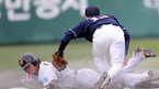 [OSEN=부산,박준형 기자] 2일 부산 사직구장에서 열리는 '2010 CJ마구마구 프로야구' 준플레이오프 3차전 롯데 자이언츠와 두산 베어스의 경기 7회말 1사 1루 롯데 이승화 타석때 1루 주자 김주찬이 2루로 도루 시도해 아웃되고 있다. / soul1014@osen.co.kr