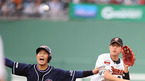 [OSEN=부산,박준형 기자] 2일 부산 사직구장에서 열리는 '2010 CJ마구마구 프로야구' 준플레이오프 3차전 롯데 자이언츠와 두산 베어스의 경기 6회말 2사 롯데 전준우의 타구가 좌익수 상공의 깃발에 맞자 야수가 잡을 수 있는 것으로 심판진 합의 끝에&