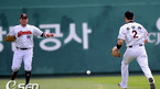 [OSEN=부산,박준형 기자] 2일 부산 사직구장에서 열리는 '2010 CJ마구마구 프로야구' 준플레이오프 3차전 롯데 자이언츠와 두산 베어스의 경기 5회말 1사 2루 롯데 조성환의 내야안타때 김현수 1루수가 공을 놓치고 있다. 그 사이 2루 주자 김주찬은 홈