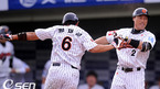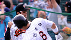 [OSEN=부산,박준형 기자] 2일 부산 사직구장에서 열리는 '2010 CJ마구마구 프로야구' 준플레이오프 3차전 롯데 자이언츠와 두산 베어스의 경기 4회초 두산 선두타자 이종욱이 우월 솔로홈런을 날린뒤 덕아웃에서 히메네스와 하이파이브를 하고 있다. / soul10