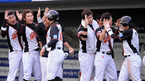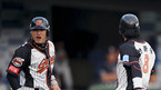 [OSEN=부산,박준형 기자] 3일 부산 사직구장에서 열린 '2010 CJ마구마구 프로야구' 준플레이오프 4차전 롯데 자이언츠와 두산 베어스의 경기 5회말 2사 2,3루 롯데 강민호의 좌익수 앞에 떨어지는 2타점 적시타때 득점을 올린 2,3루 주자 홍성