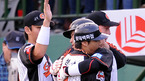 [OSEN=부산,김영민 기자]3일 부산 사직 경기장에서 열린 '2010 CJ 마구마구 프로야구 준플레이오프 4차전' 두산 베어스와 롯데 자이언츠 경기 5회말 2사 2,3루 강민호 동점 적시타때 홍성흔 전준우 득점을 올리며 환호하고 있다./ ajyoung@osen.co.kr
