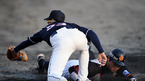 [OSEN=부산,박준형 기자] 3일 부산 사직구장에서 열린 '2010 CJ마구마구 프로야구' 준플레이오프 4차전 롯데 자이언츠와 두산 베어스의 경기 7회말 1사 1,2루 롯데 강민호의 타석때 1루 주자 전준우가 두산 용덕한의 견제구에 태그아웃되고 있다 / sou