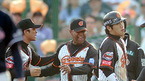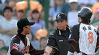 [OSEN=부산,박준형 기자] 3일 부산 사직구장에서 열린 '2010 CJ마구마구 프로야구' 준플레이오프 4차전 롯데 자이언츠와 두산 베어스의 경기 7회말 1사 1,2루 롯데 강민호의 타석때 1루 주자 전준우가 두산 용덕한의 견제구에 태그아웃되자 공필성 코치와 전준우